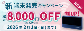 期間:2025年11月4日(火)~2026年2月1日(日)新規回線をご契約の場合、端末代24,800円(税込27,280円)のところ、8,000円(税込8,800円)引きの16,800円 (税込18,480円)にてお申し込み可能です。