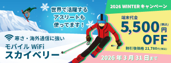 期間:2024年4月1日(月)~終了日未定スカイベリーWiFiをご契約中の方限定で、追加申込みをしていただくと事務手数料3,850円が無料になる特典があります。